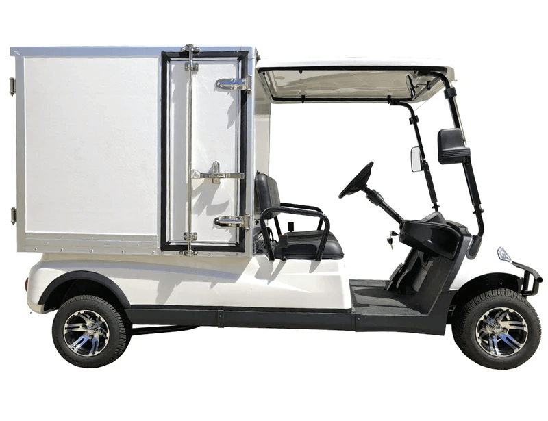 This food and beverage cart is designed to satisfy the service needs of golf and resort operations, industrial complexes, hotels, leisure, and caravan parks – anywhere an efficient and reliable food & laundry service to customers and staff is needed. Minimize restocking time with this stylish and robust electric catering golf car which boasts loads of storage room for snacks and beverages while keeping them warm or cool.